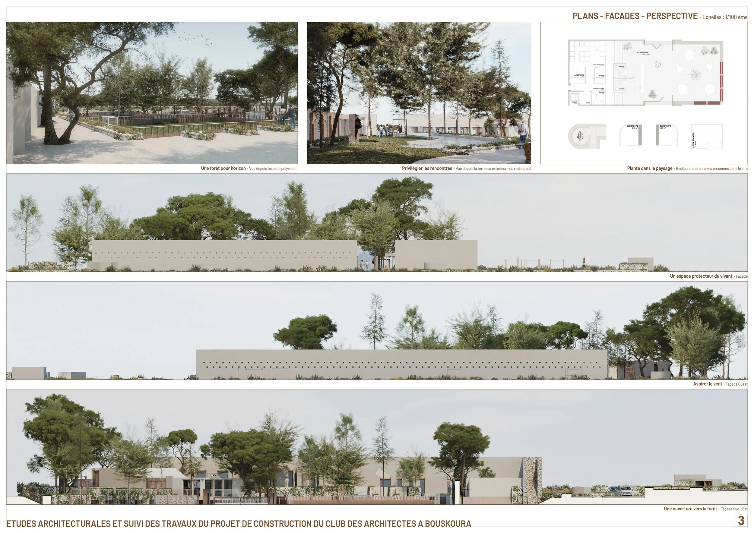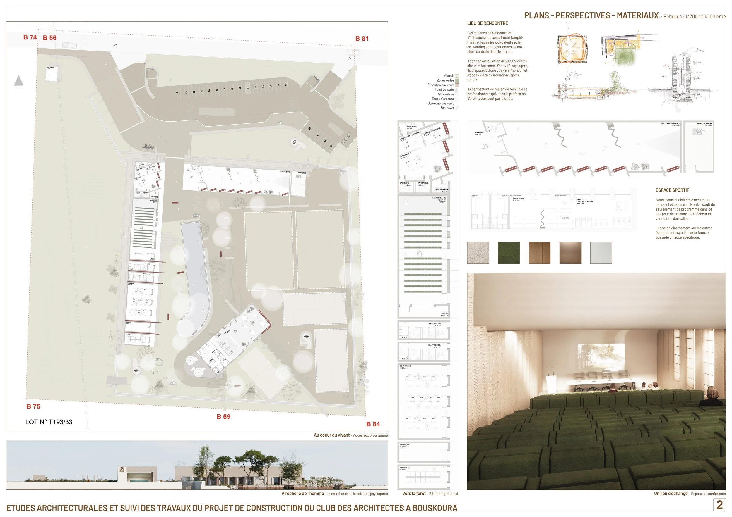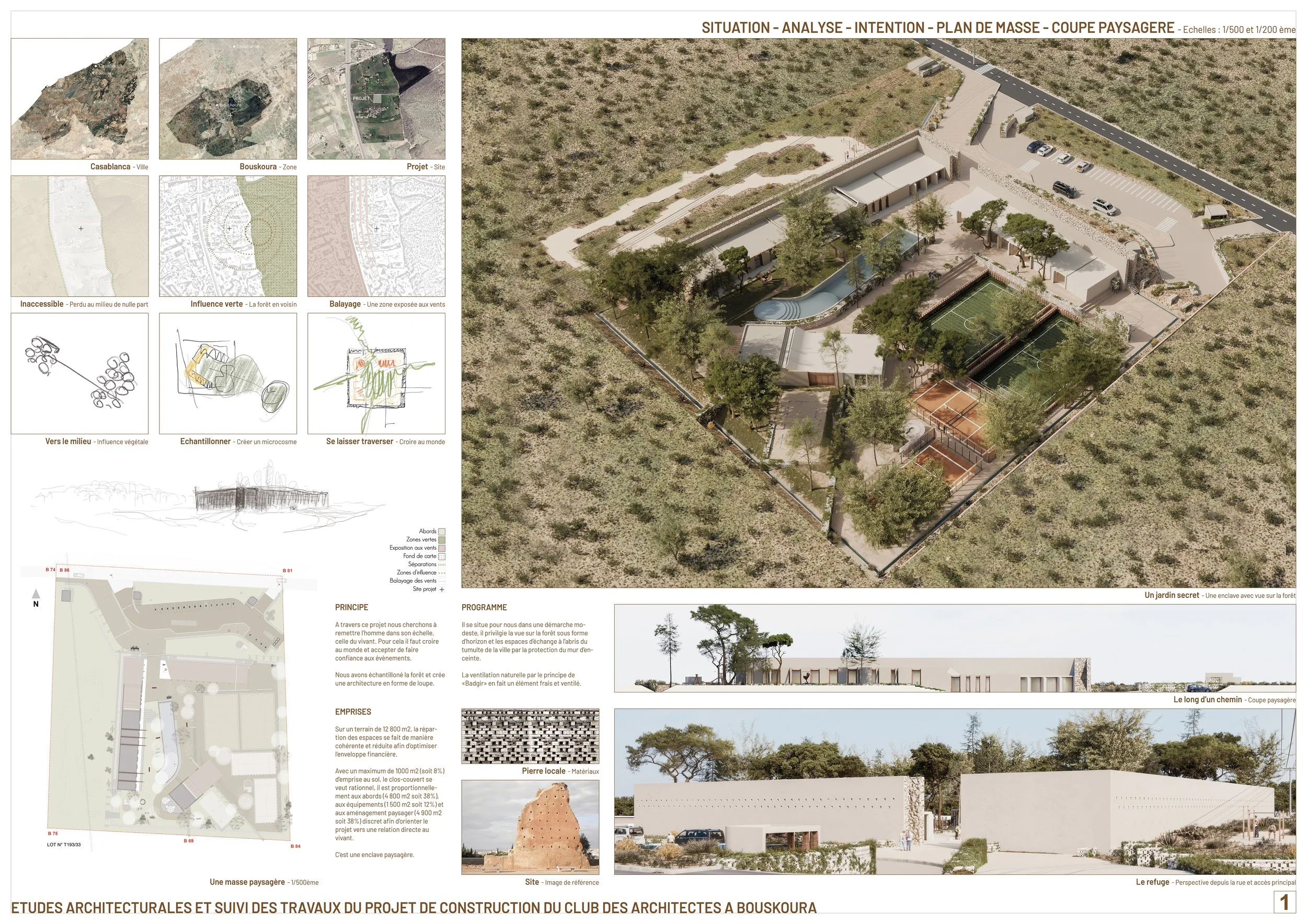Dans le cadre d’un concours lancé par le Conseil de l’Ordre des Architectes, l'équipe AGBAA à répondu au programme de conception et construction du futur Club des Architectes dans la ville de Bouskoura à proximité de Casablanca au Maroc.